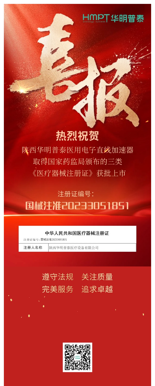 喜報:陜西華明普泰醫(yī)用電子直線加速器獲批上市